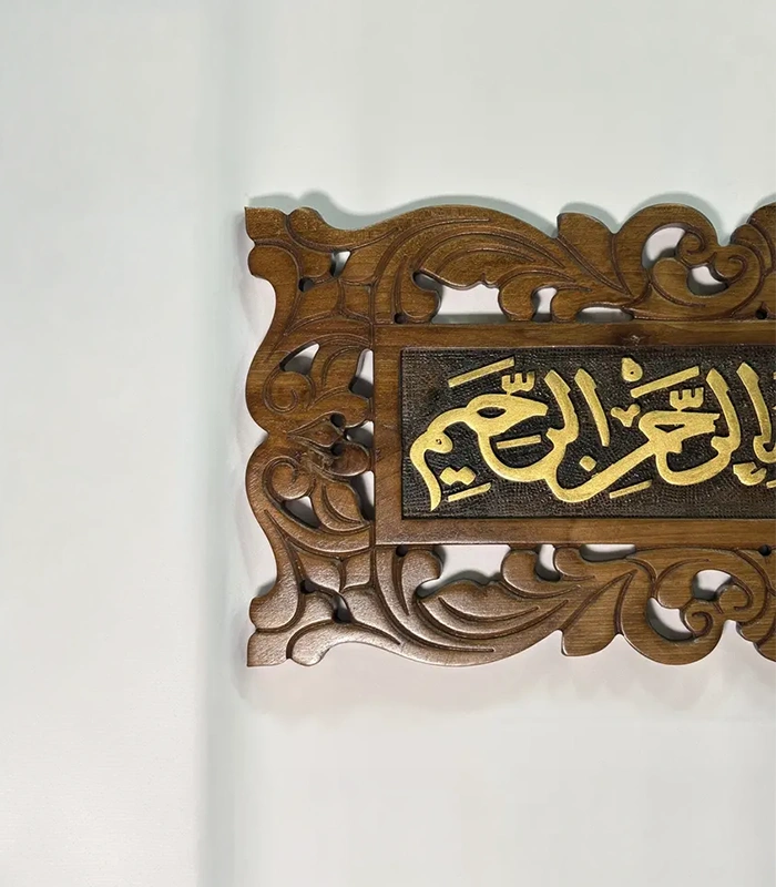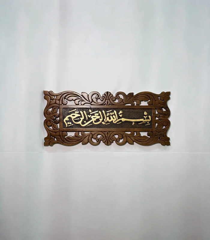 Maraş El Oyma Bismillahirrahmanirrahim Duvar Süsü 60×26 cm, fırınlanmış kök ceviz ağacından üretilmiş el yapımı dekoratif tablo. Evinize estetik ve manevi değer katar. Hemen keşfet!