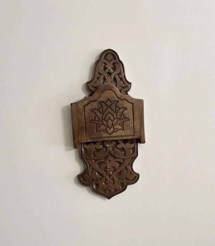Maraş El Oyma Ceviz Ağacı Kavukluk, %100 doğal fırınlanmış kök ceviz ağacından üretilmiş olup el işçiliğiyle oyulmuş klasik desenleriyle öne çıkar. Geleneksel kavukluk formu sayesinde hem estetik hem de fonksiyonel bir kullanım sunar. Duvara monte edilebilen yapısı ile az yer kaplar ve cami, dergâh, ev veya ofis dekorasyonunda rahatlıkla kullanılabilir.
