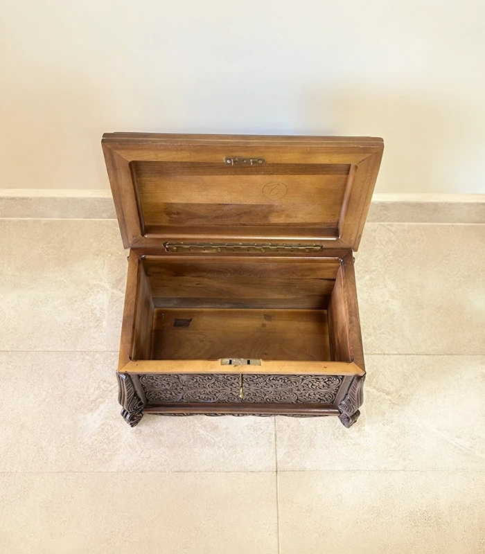 %100 doğal ceviz ağacından üretilen, el oyma Ece Eskitme desenli çeyiz sandığı. Şık, dayanıklı ve dekoratif yapısıyla evine estetik kat. Hemen keşfet.