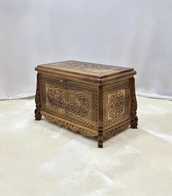 Tamamen el yapımı ve sanatsal dokunuşlarla üretilen sandık, her detayıyla ustalığın ve emeğin yansımasıdır.