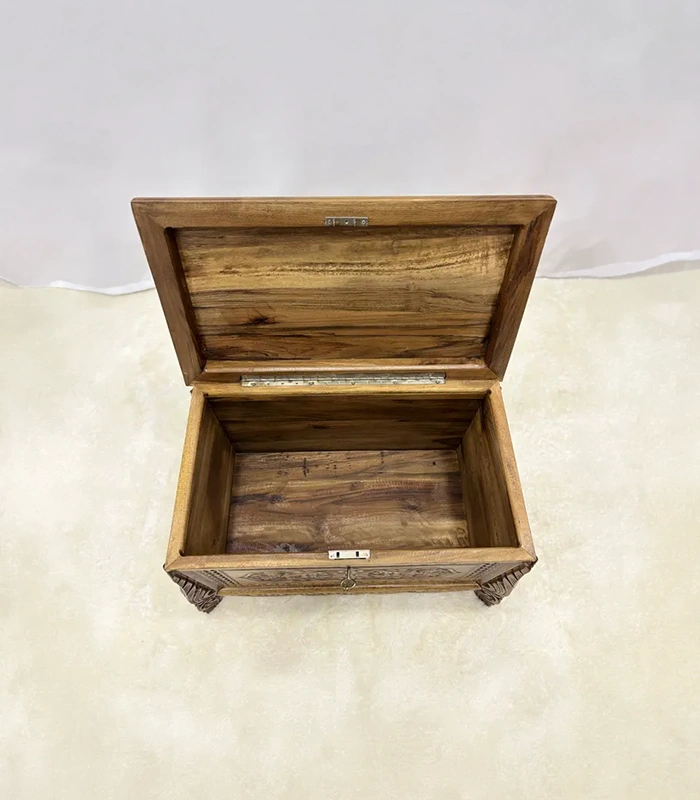 Maraş El Oyma Ceviz Ahşap Çeyiz Sandığı-Ahşap Sandık – 68x40x48 cm | Papatya Natural Model